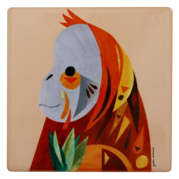 - Orangutan ceramic coaster with cork backed. Comes in an attractive gift box. Hand wash recommended. Dimensions (W x L x H): 9.5 x 9.5 x 0.65 cm, Weight: 95 g, Material: ceramic and cork.