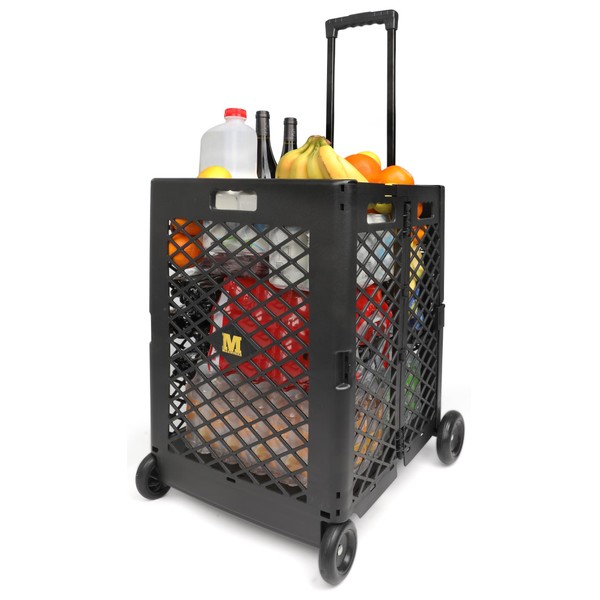 - 【FOLDABLE DESIGN & EASY STORAGE】Our folding shopping cart is perfectly sized for any household. When not in use, a quick and effortless folding process takes mere seconds, allowing you to conveniently store it in any corner. Whether in your garage, kitchen, warehouse, or behind the refrigerator, this cart adapts to your space with ease.