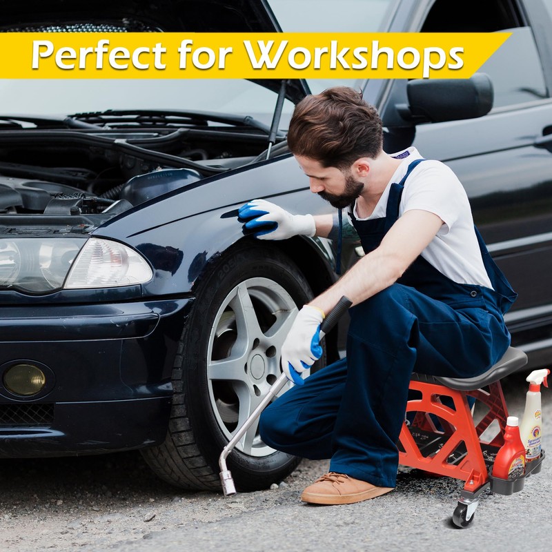 MaxWorks MaxWorks 50957 Ergonomic Seat Mechanic Stool Chair 22.9" L x 13.9" W x 17" H, with 4pcs 2.5" Swivel Casters, with Tool Tray for Workshop, Garage, Auto Repair - 300 Lbs Capacity