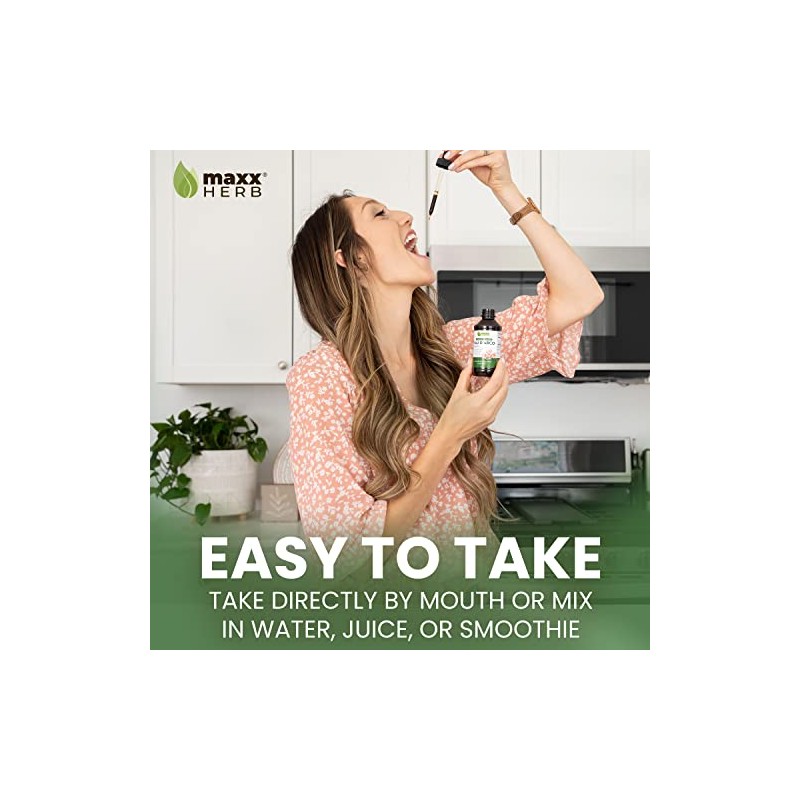 - Easy to consume. Either take it straight with the included dropper or add into juice or water.
