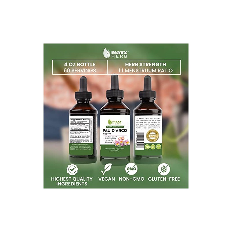 - MAXX STRENGTH AND EFFECTIVE – Most pau d’arco supplements are watered down and not as effective as our pau darco extract. At Maxx Herb, our process takes 2 weeks to properly extract key components (volatile oils & esters) to ensure maximum effectiveness. Benefits that you won’t get from Pau D’arco / Taheebo Tea