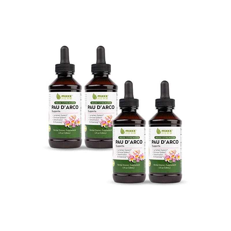 Maxx Herb PAU D'Arco Tincture - Max Strength PAU Darco Extract for Immune Support, Taheebo Tea Inner Bark Absorbs Better Than PAU Darco Capsules – 4 Bottles, 4 Oz Each (240 Servings)