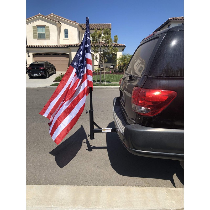 Our MaxxHaul flagpole holder is designed to let your flag fly while maintaining a secure hold. Features 2 tightening knob type screws for added stability of the flag especially when in motion. Easily fits 1. 6" to 2. 3" flagpole in diameter in your 2" standard class III and IV hitch receiver. With its heavy duty steel and rust-resistant powder coating. It's ideal to withstand most weather conditions. Includes a drain hole to drain away rain, melted snow to keep the part long lasting. There are no tools required, making it extremely convenient to install. Hardly any work needed to be done, just slide the mount into the hitch receiver.