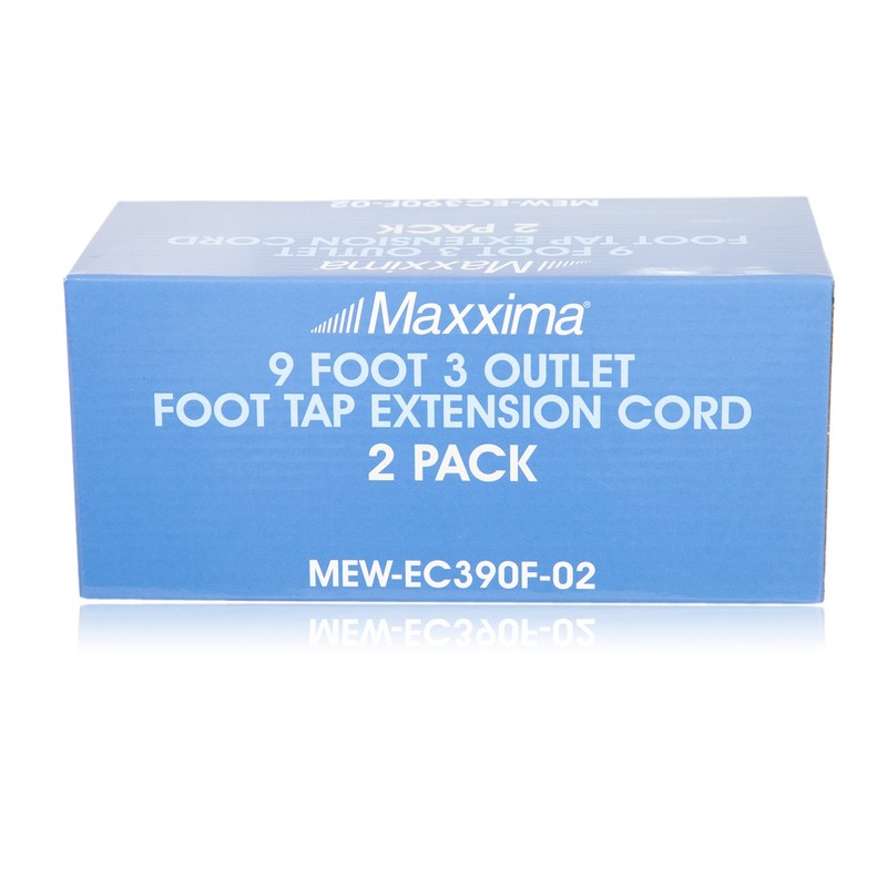 This Maxxima 9 foot 3 outlet foot tap extension cord features an easy-to-use On/Off Foot Switch. Quickly turn on or off any device(s) plugged into the extension cord with a simple tap of your foot. Perfect for floor lamps, and for providing a convenient switch tied to a hard to reach outlet.