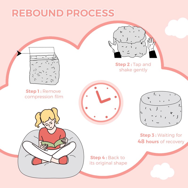 - Bean Bag Rebound: Bean bags take time to rebound, knock and shake to promote recovery and wait 48 hours to return to their original shape, providing cosy furniture for children's rooms