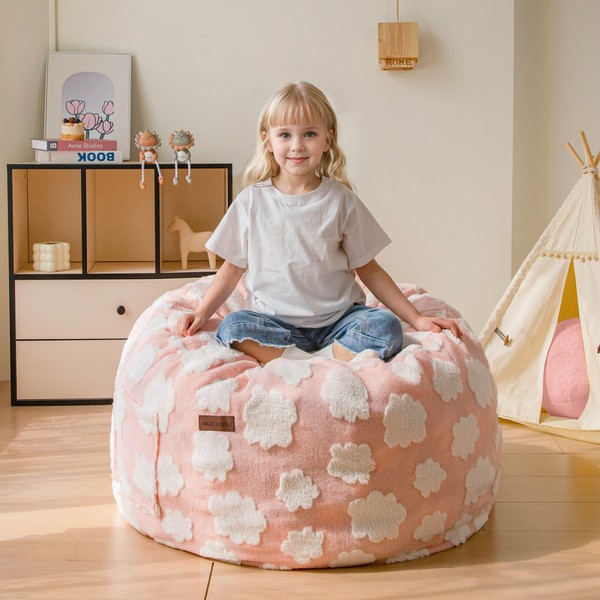 MAXYOYO Bean Bag Chair for Kids, Cloud Pattern Lazy Chair with High-Density Foam Filling, Stuffed Floor Sofa Couch for Boys and Girls, Child Floor Sofa for Gaming, Reading, Pink