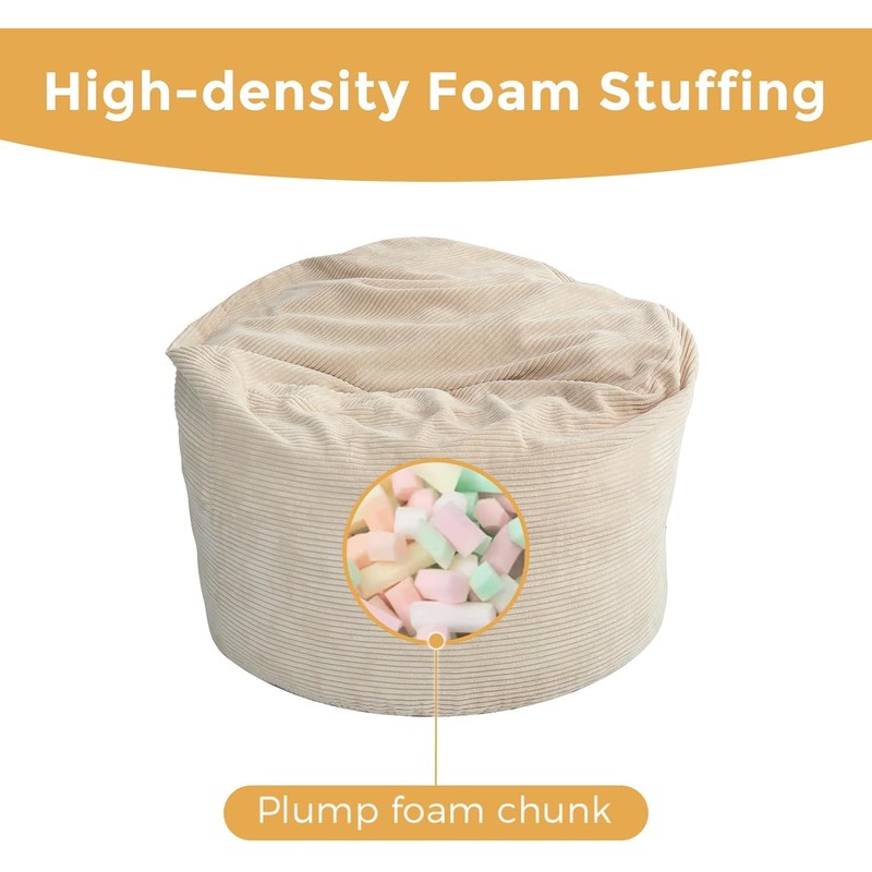 - Washable & Comfy Cover: The outer cover of the bean bag chair is made of breathable premium corduroy fabric, which has a soft and skin-friendly texture. It's also machine washable, allowing for easy cleaning. The bean cover features a long zipper that runs the length of the bean bag, making it simple to take on and off. In case of spills or stains, the cover can be easily washed to restore it to a like-new condition
