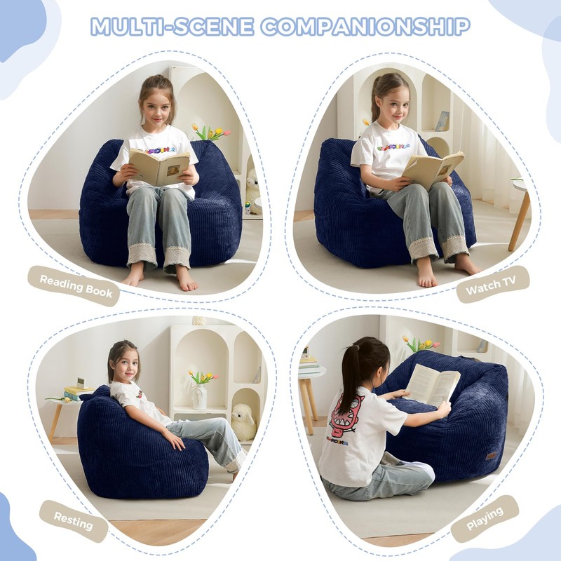 - Comfy Bean Bag Sofa: The kids sofa chair is made of durable snuggly-soft corded fabric. It could maintain good integrity after children's activities