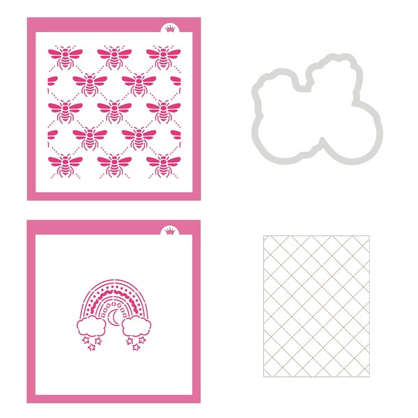 • May 2024 Subscription Box - Spring into Nature. May 2024 Subscription Box - Spring into Nature includes: Boho Rainbow Stencil, Bees Lattice Stencil, Bicycle with Flowers Cookie Cutter, and Crisscross Cookie Backer Cards - Pack of 25.