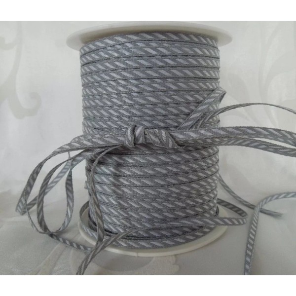 MAY ARTS RIBBONS~SOLID DIAGONAL STRIPE~GRAY & WHITE~1/8TH INCH WIDE X 3 YARDS!