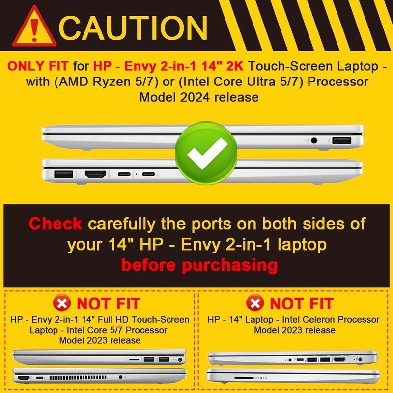 - Designed for HP-Envy 2-in-1 14-inch 2K touch screen laptops with either an (AMD Ryzen 5/7) or (Intel Core Ultra 5/7) 2024 processor, please check the USB port on the side of the computer to make sure you purchase it as shown in Figure 2.