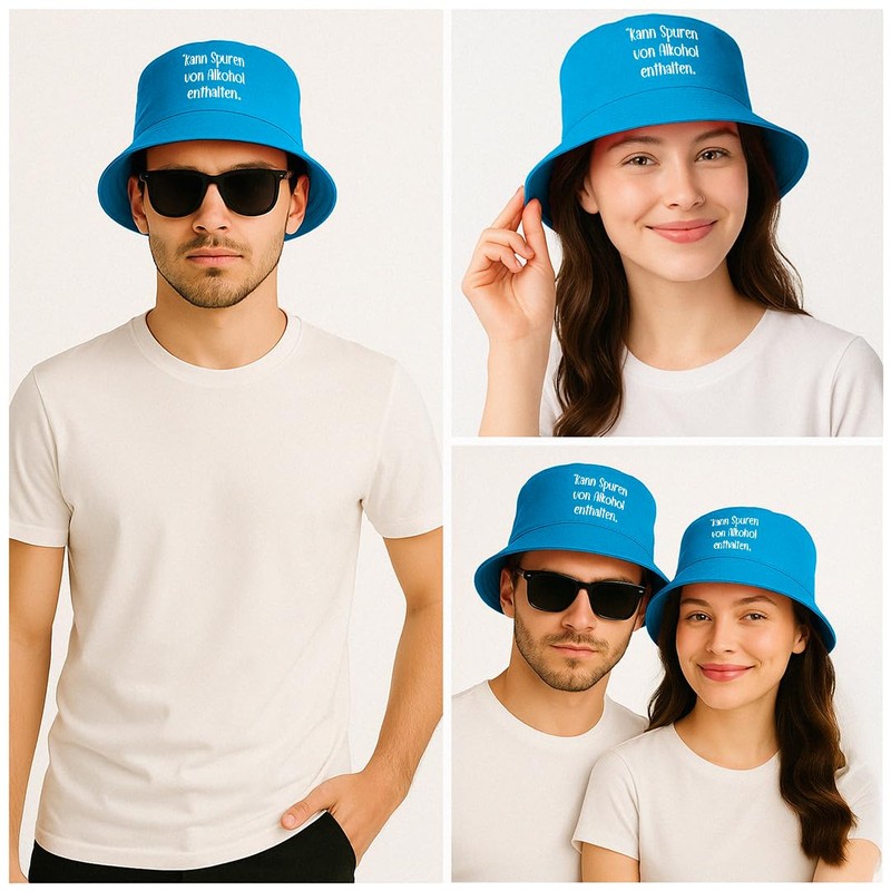 May contain traces of alcohol - Funny Fisherman Hat - The Perfect Sun Hat for Men & Women - Ideal as a Malle Outfit, Party Accessory & Festival Bucket Hat for the Beach, blue, Unit size