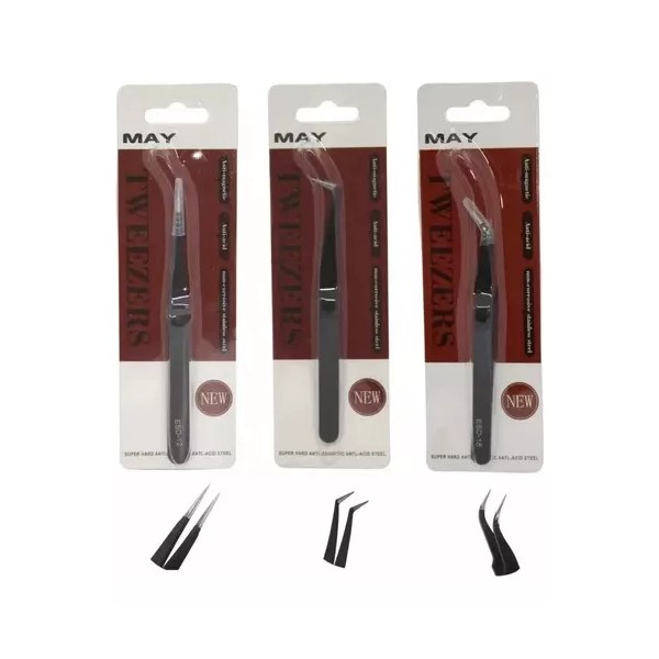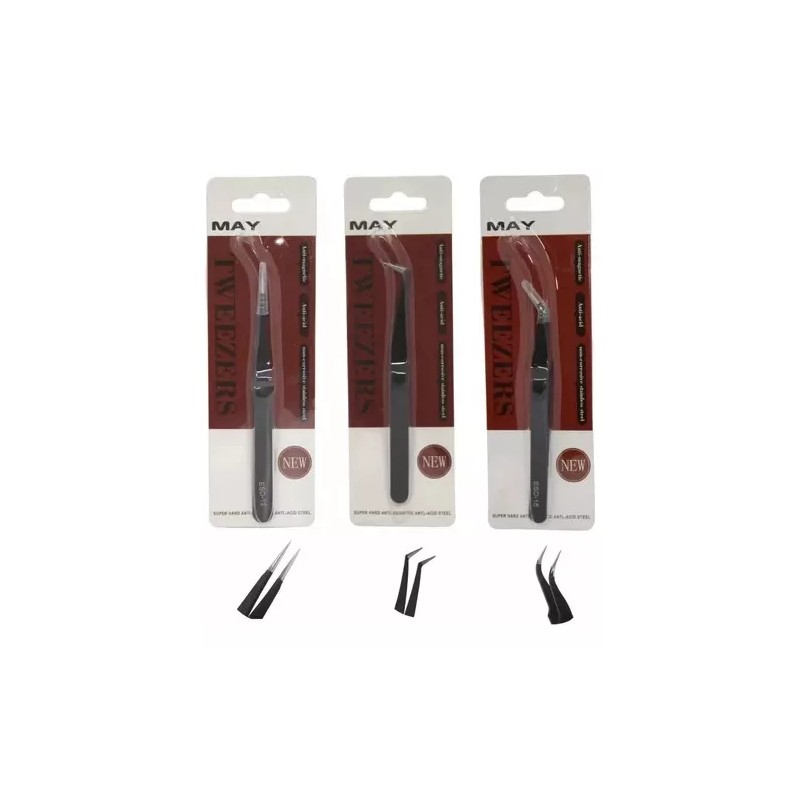Pinzas para aplicación de extensiones de pestañas MAY
