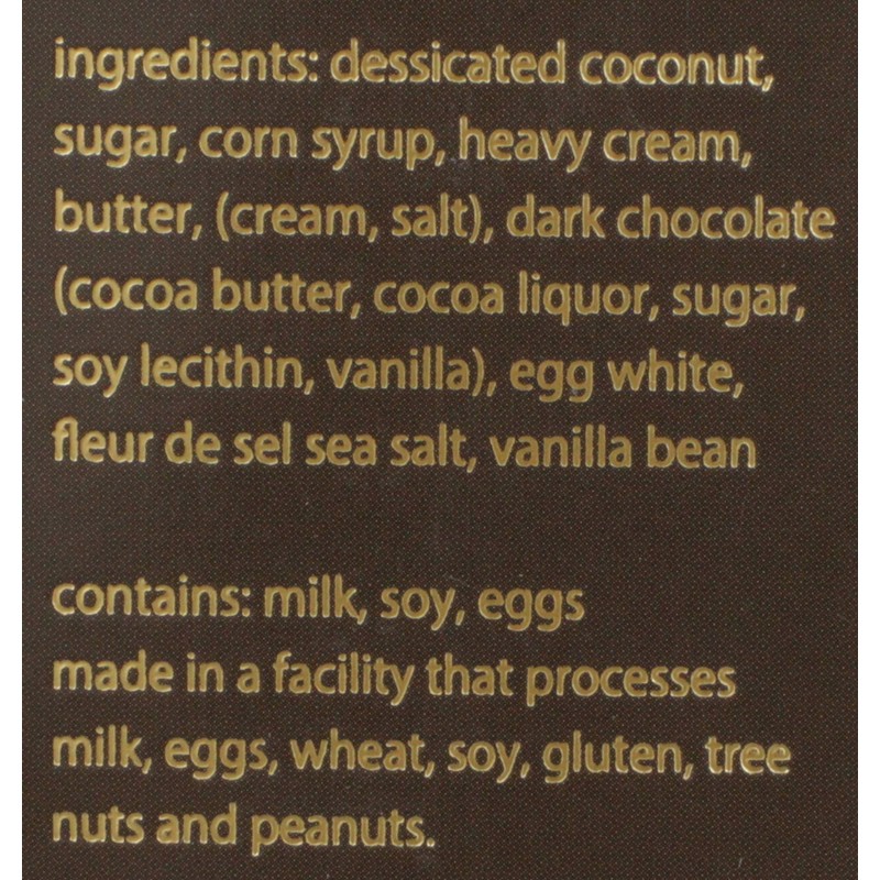 - Crispy Coconut Cookie, Salted Caramel, Creamy Coconut with 66% Dark Chocolate