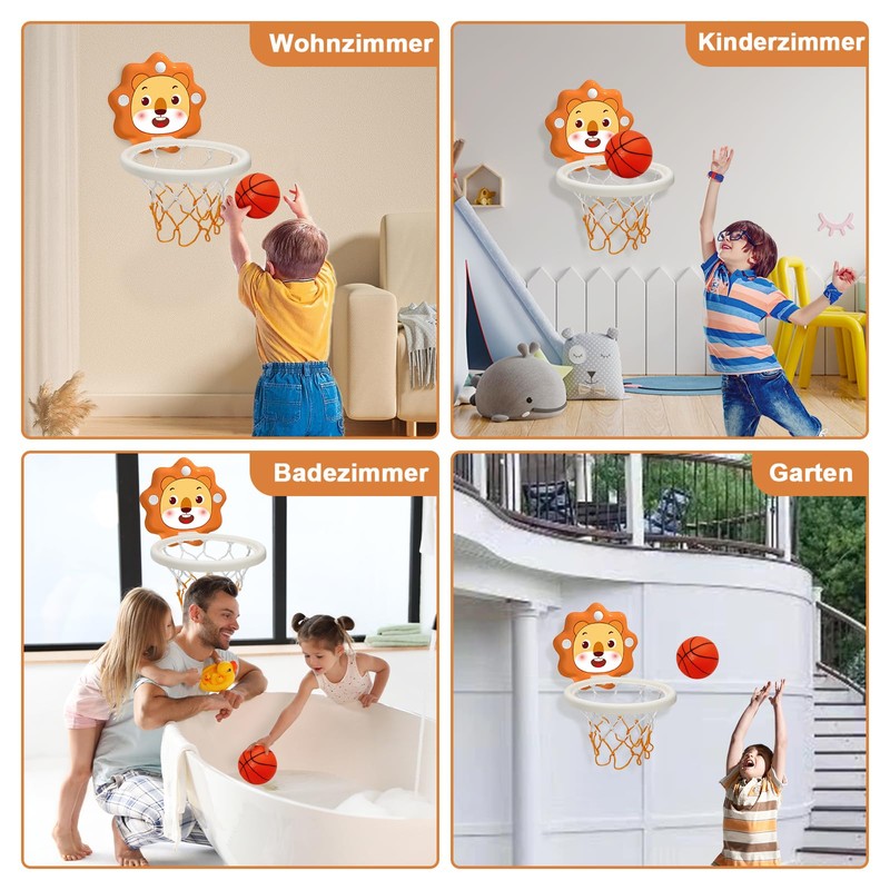 - Mini basketball hoop set: you will receive a basketball toy, a basketball net, a basketball, a pump, 2 adhesive hooks, 2 suction cup hooks and cartoon lion stickers, which can attract children's attention and stimulate children to exercise.