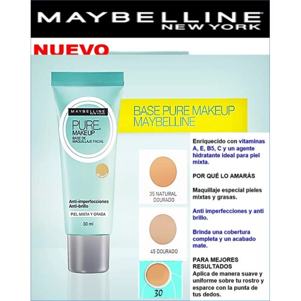 Maybelline Base De Maquillaje Maybelline Pure 3 Pza
