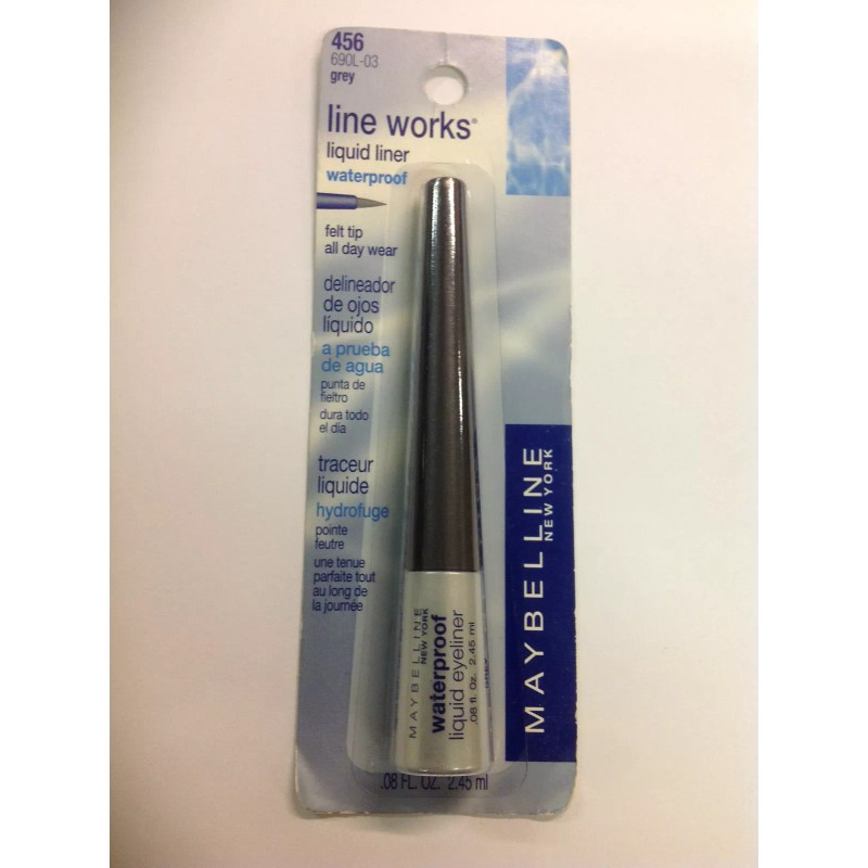 Maybelline Line works Waterproof Liquid Eye Liner Felt tip GREY #456 NEW.