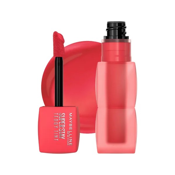 Maybelline Tinta para labios Super Stay Teddy Tint Tono July Forever, 4.2ml - Tinta multiusos de larga duración, efecto mate difuminado hasta por 12H, textura suave a los labios, sin transferencias