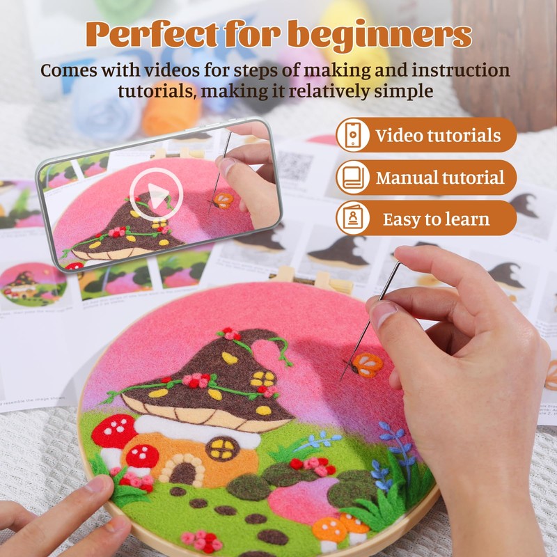 - Simple Operation: We have specially prepared the English manual in the painting with wool needle felting kit, and there are detailed production steps on the manual. You can learn wool felt making by the instructions. This needle felt painting is suitable for beginners.Our felt cloth is already printed, you just need to poke the wool onto the cloth, very convenient