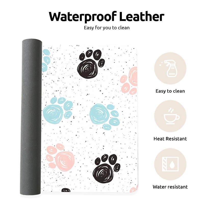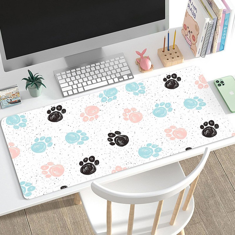 MAYCARI Cute Cartoon Footprint PU Leather Large Desk Pad for Desk, Long Gaming Keyboard Desk Pad, Waterproof Computer Desk Writing Mat, Office Desk Accessories -27.5"x13.8"(70cmx35cm)