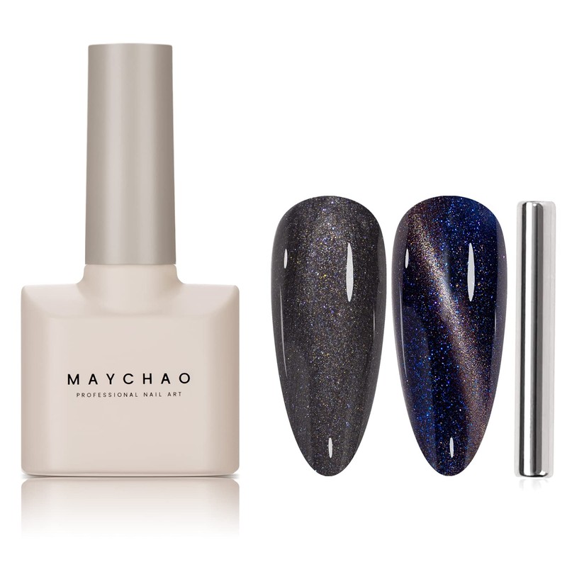 MAYCHAO 15ML Galaxy Cat Eye Gel Nail Polish 1Pc Dark Blue Shimmer Gel Polish with Magnet Soak off Holographic Magnetic Nail Polish for Nail Art Manicure Salon DIY at Home, 0.5 OZ