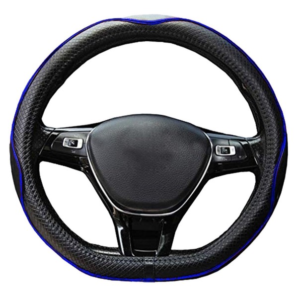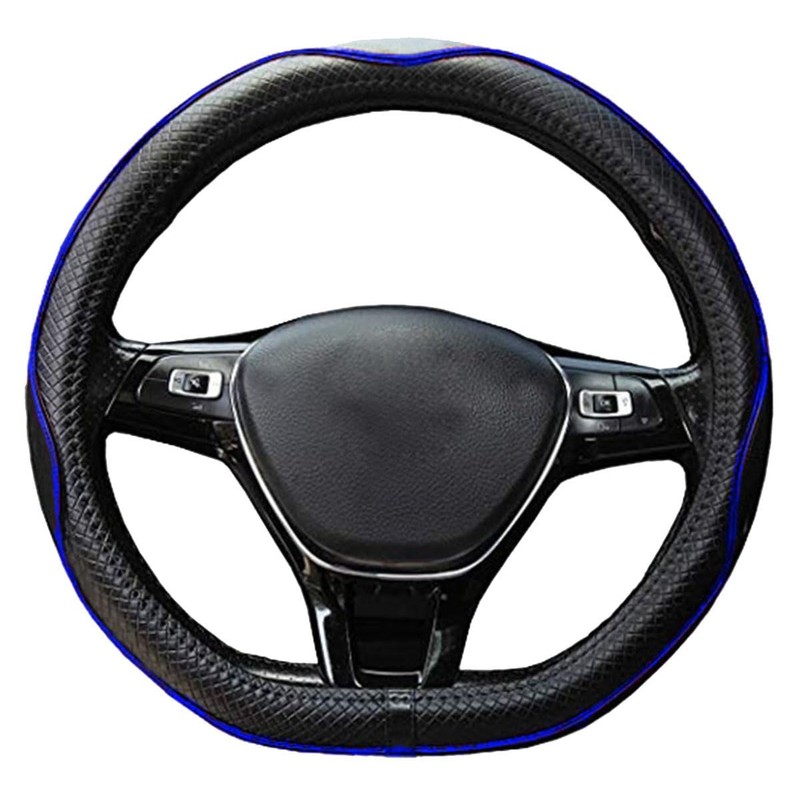 Mayco Bell - Funda de cuero de microfibra para volante de coche (forma de D, negro y azul oscuro)