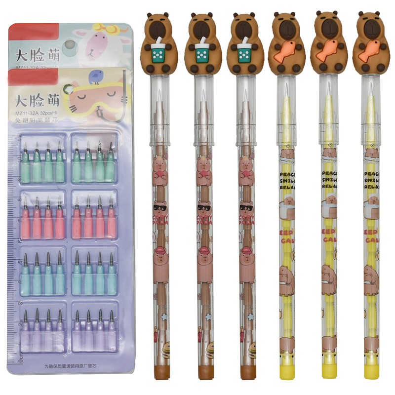 Maydahui 12 PCS Capybara Stackable Pencil Non Sharpening HB Pencils Novelty Stacking Multipoint Pencil Pop Up Pencils With 64 PCS Nibs for School Party Office
