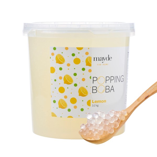 Mayde Popping Boba Pearls for Drinks, Desserts, & Breakfast Bowls (Lemon Flavor, 7 Pounds)