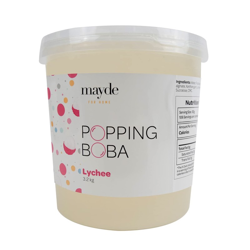 Mayde Popping Boba Pearls for Drinks, Desserts, & Breakfast Bowls (Lychee Flavor, 7 Pounds)