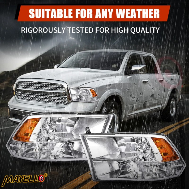 mayello Pair New Headlights For 09-18 Ram 1500 2500 3500 Base ST SLT SXT TRX Big Horn