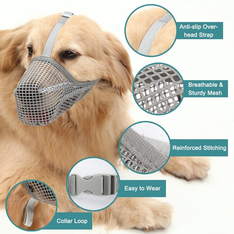 • Humane Dog Muzzle: A soft full-covered mesh panel makes the muzzle comfortable to wear, also allows your dog to breathe, and drink, and provides the best pet breathing and ventilation as normal while preventing chewing and biting