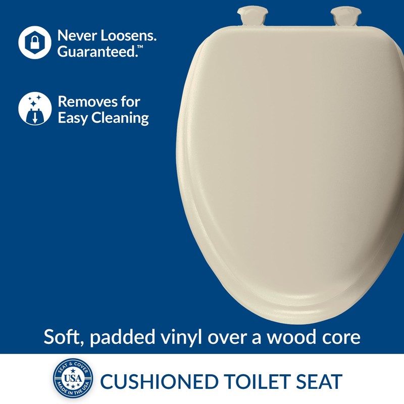 Mayfair 1815EC 006 Removable Soft Toilet Seat that will Never Loosen, ELONGATED - Premium Hinge, Bone