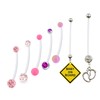 Mayhoop 7 Pcs Pregnancy Belly Bars Flexible 14G Maternity Sport Bioplast CZ & Paved Crystal Ball Navel Button Ring Retainer Pink