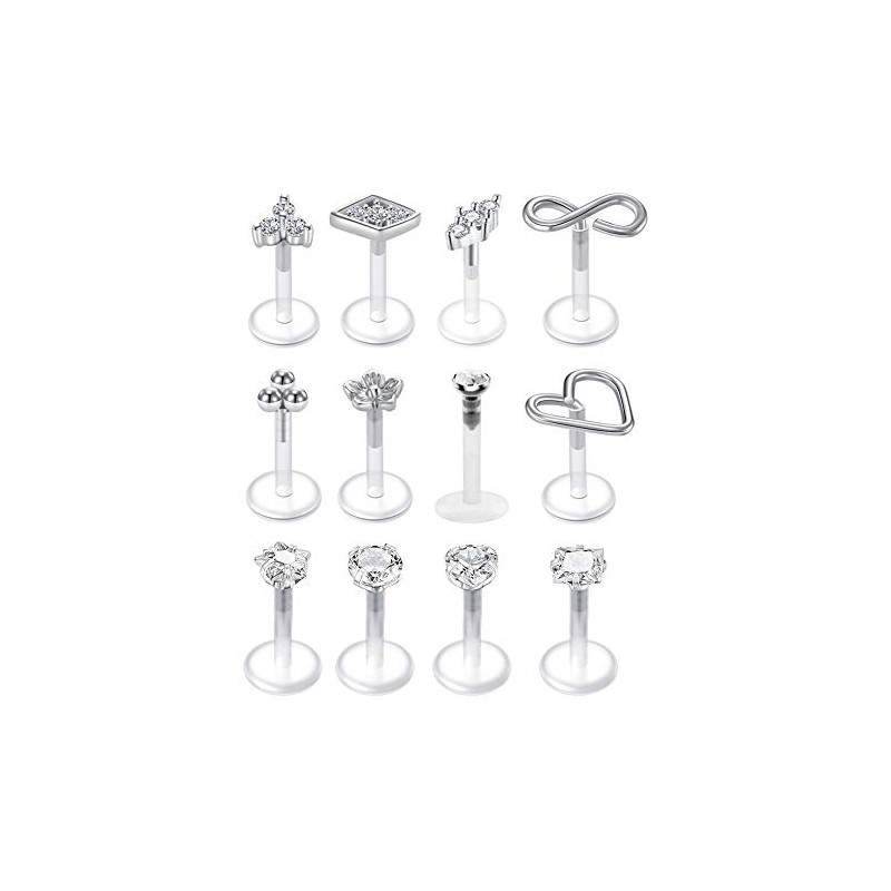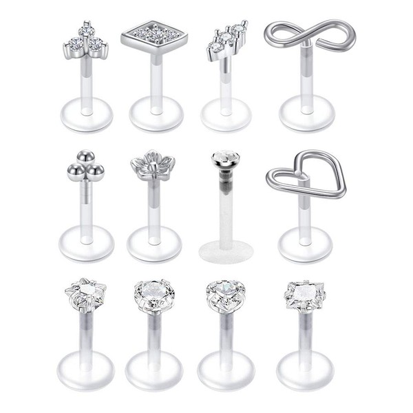 Mayhoop Lip Piercing Set, Bioflex Flexible Acrylic, Labret / Monroe Stud Piercing, Tragus / Helix / Ear Piercing, 6 mm / 8 mm