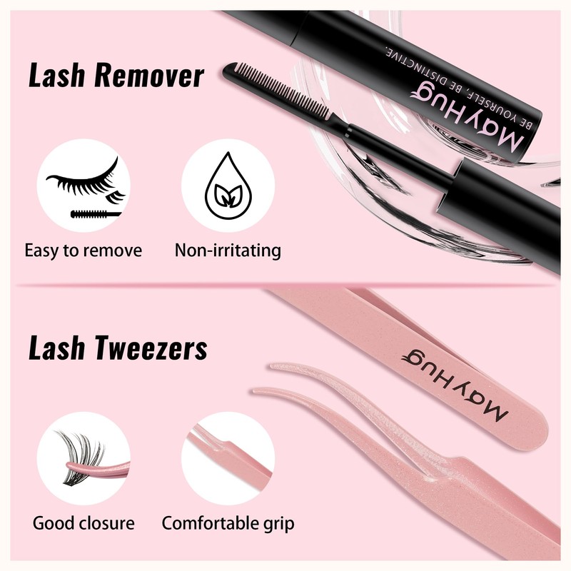 - 【You Will Receive a Lash Kit】including 280 lash clusters and 3 tools: lash bond and seal waterproof, lash remover, lash tweezer. This kit allows you to achieve a professional salon effect in the comfort of your home, whilst saving time and costs.