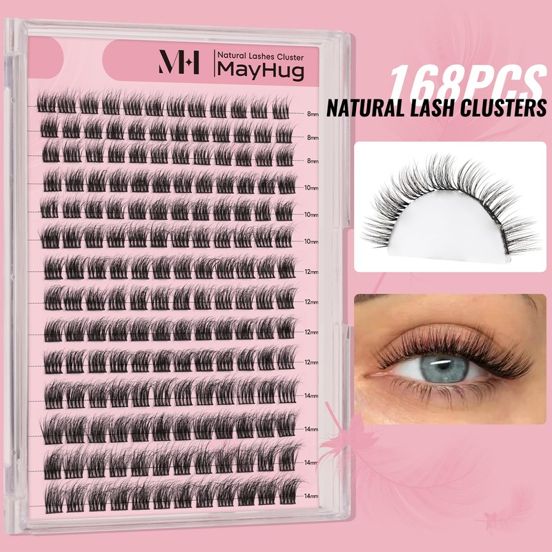 Mayhug Eyelash Clusters, 168 Pieces Cluster Lashes, Natural Look, Wispy Artificial Mink Eyelashes, C Curl Individual Eyelash Extensions, Eyelash Extensions for DIY at Home (8-14 mm, Bare)