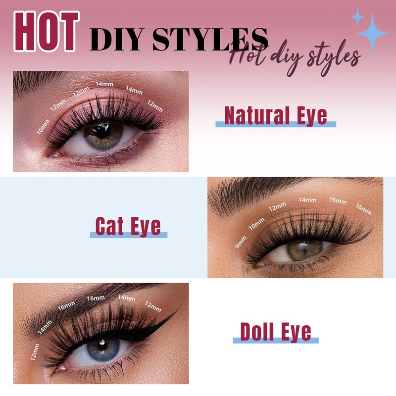 - Versatile Cluster Eyelashes for Custom Look:Each box contains 320 lashes in 16 rows, with mixed lengths ranging from 9mm to 16mm. The D-curl eyelashes offer you the flexibility to create different styles, suitable for any occasion.