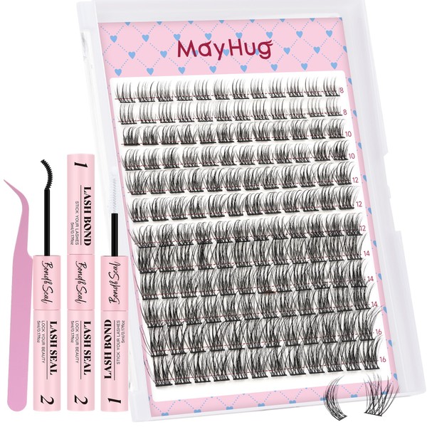 Mayhug Eyelash Extensions Set, Natural Lash Extension Set, 8-16 mm, Eyelash Extensions, D Curl Lashes Extension Kit, DIY Eyelash Set for Home (BareBloom Kit)