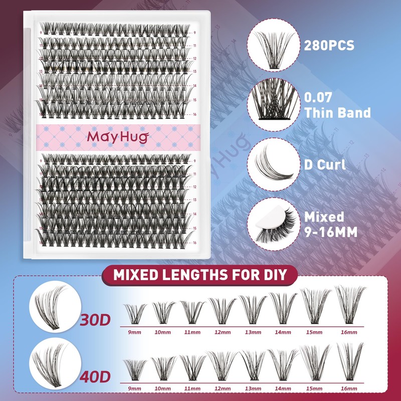 - Mix Length To Choose: Mayhug Individual lashes provide you with various styles and lengths, allowing you to customize according to your needs, saving more than 80% of the time and money compared to eyelash salons, and allowing you to have a more natural look at home.