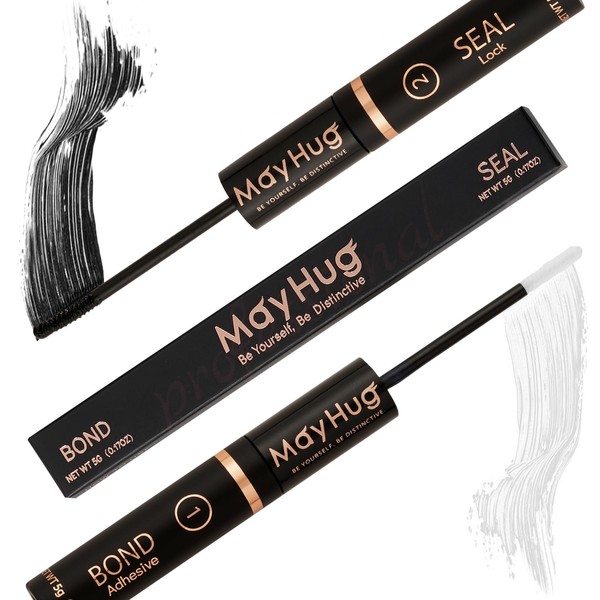 Mayhug Lash Bond and Seal, Eyelash Bond and Seal Waterproof 10ml, Super Strong Cluster Lash Glue Hold 72 Hours, Eye Lash Glue Bond and Seal Latex Free & Suitable Sensitive Eyes (Black)