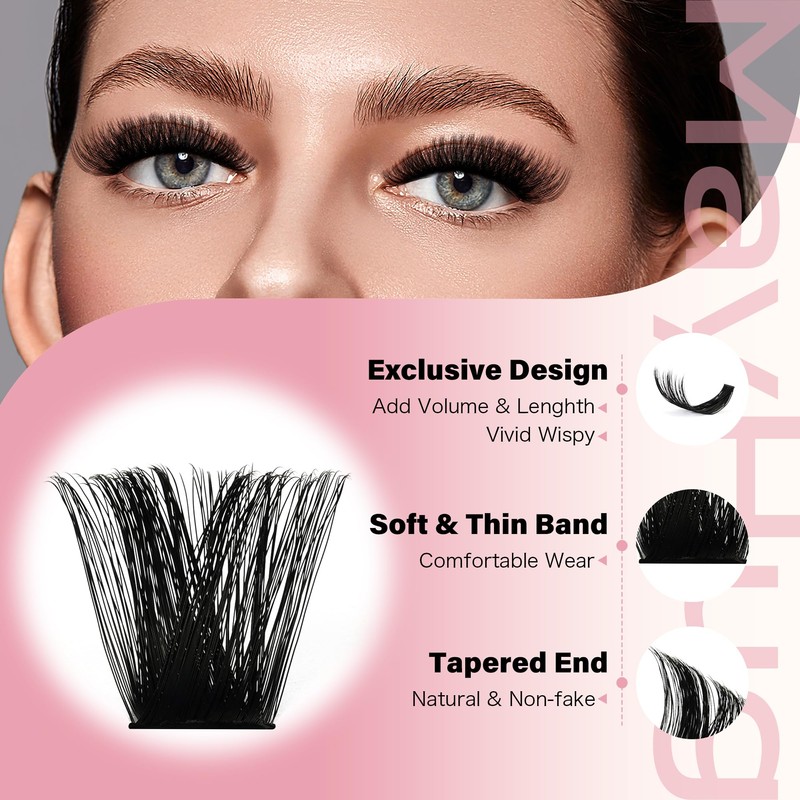 - 【Save Time with Easy Application】: Whether you're a makeup aficionado or a beginner, you can enjoy cluster lashes at home and create your own beauty looks. Our eyelashes clusters are easy to apply, enabling you to achieve a natural and stunning salon-like lash extension appearance with less time and money.