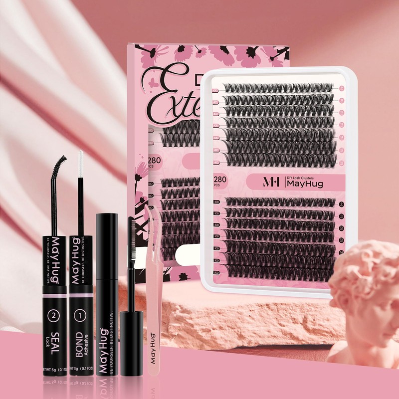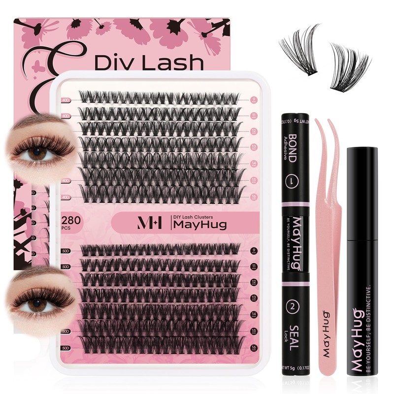 Mayhug Lash Clusters Kit - Individual Lashes Clusters, 9-16MM D Curl Volume Lash Extension Kit, 40D+50D Clusters with Bond and Seal, Remover, Tweezers, 280PCS Eyelash Extension Kit