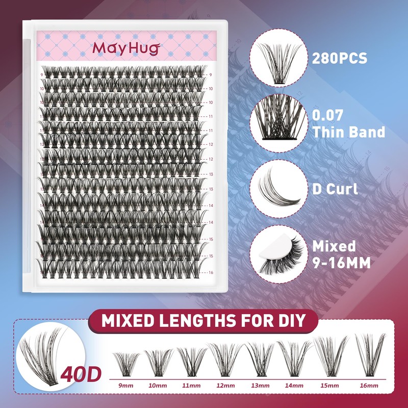Mayhug Lash Extension Set 40D Wimpern Extensions Set 9-16mm Cluster Lashes 28...