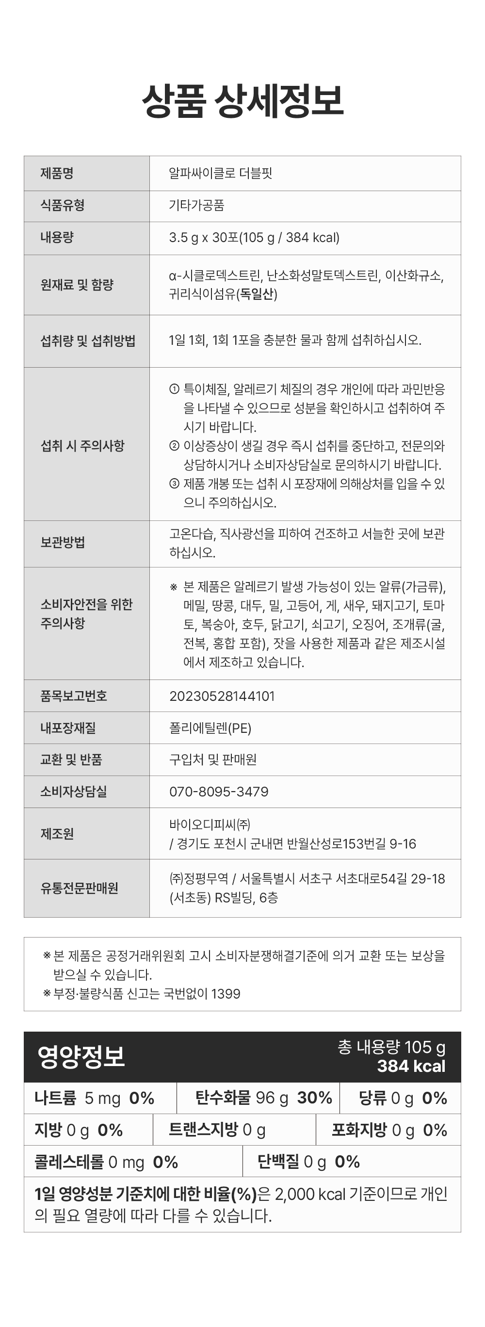(MAYJAY)메이제이 알파사이클로덱스트린 난소화성말토덱스트린 더블핏 (MAYJAY) Mayjay Alpha Cyclodextrin Non-digestible Maltodextrin Double Fit