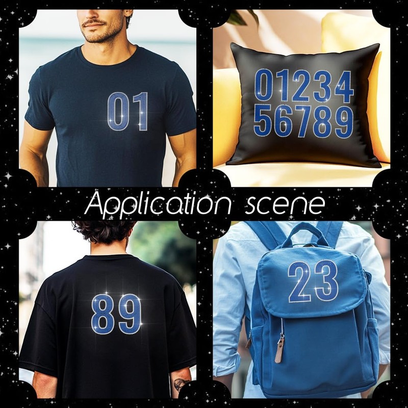 - 0-9 Number Design: The numbers 0-9 are filled with deep blue rhinestones and outlined with pure white rhinestones, a two-color collision like the junction of the night sky and ice. Suitable for birthdays, anniversaries, jersey numbers and other scenarios, both practical and aesthetic.