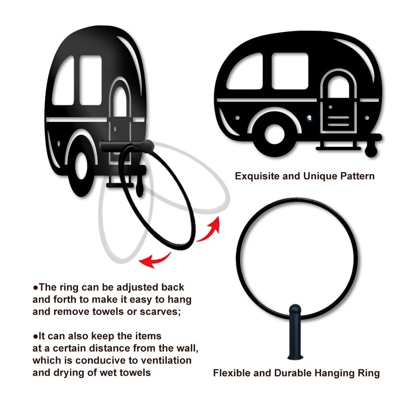 MAYJOYDIY Motorhome Motif Metal Towel Ring Camping Cars Round Towel Holder Cartoon Car Towel Holder Black Bathroom Towel Holder for Kitchen Bathroom Home Laundry Room Decoration Gifts