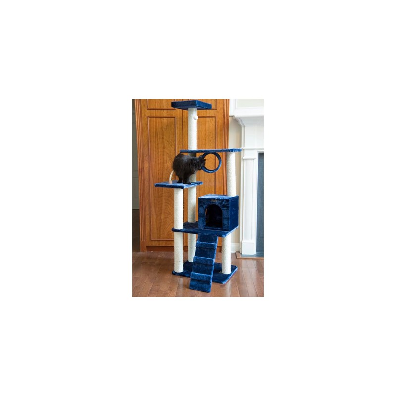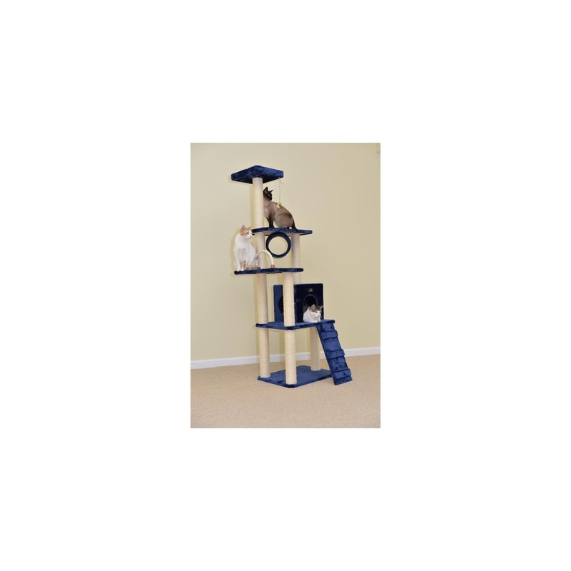 Maykoosh Island Interiors Navy Cat Climbing Tower with Multiple Perches, Sisal Scratching Posts, Playhouse, Tunnel, Ramp, Faux-Fur Cover, Easy Assembly