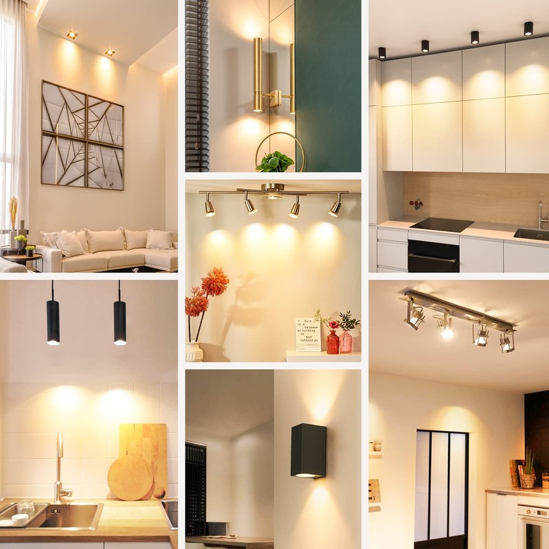 • Easy Installation & Wide Application: Standard MR16 shape with universal GU10/Bi-pin lock base, the track lighting bulbs can be easily screwed into all standard GU10 cans fixtures, no wire needed, Great spotlight bulb for recessed track lighting, range hood, stovetop, living room, laundry room, kitchen, bedroom, bathroom, hallway, entryway, dining room, garden, garage, porch, patio, front porch lighting, office, hotel.