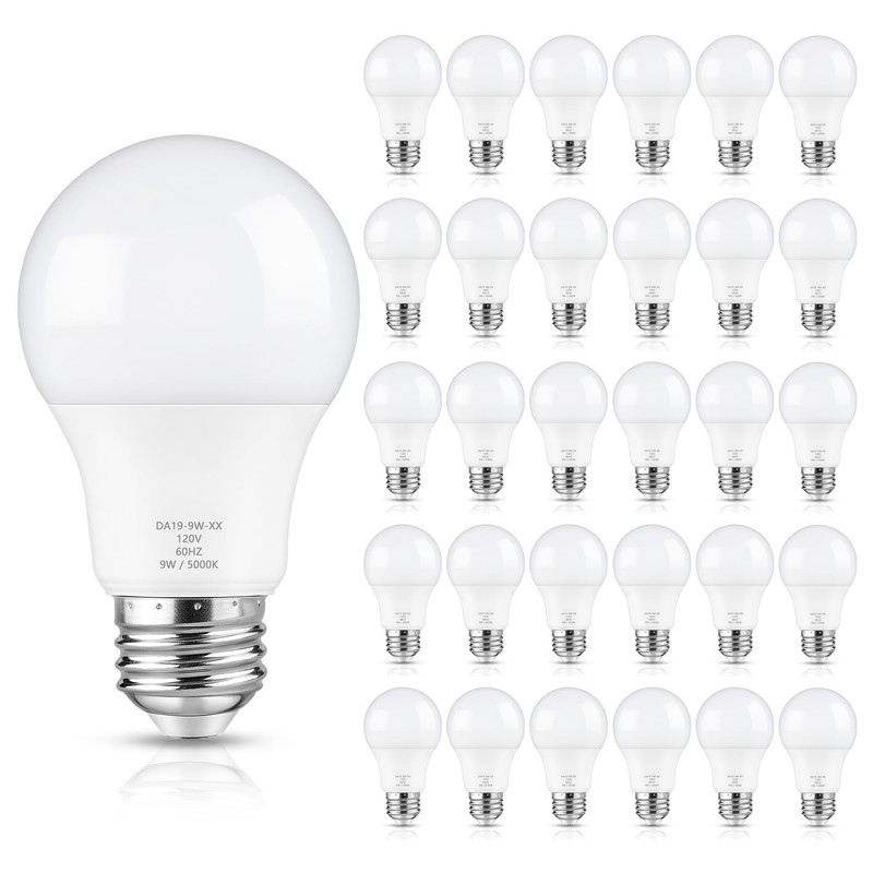 Maylaywood Maylaywood A19 LED Light Bulb Dimmable, 60 Watt Equivalent, 5000K Daylight White, 900LM, E26 Base, 9W Bright White, 30-Pack