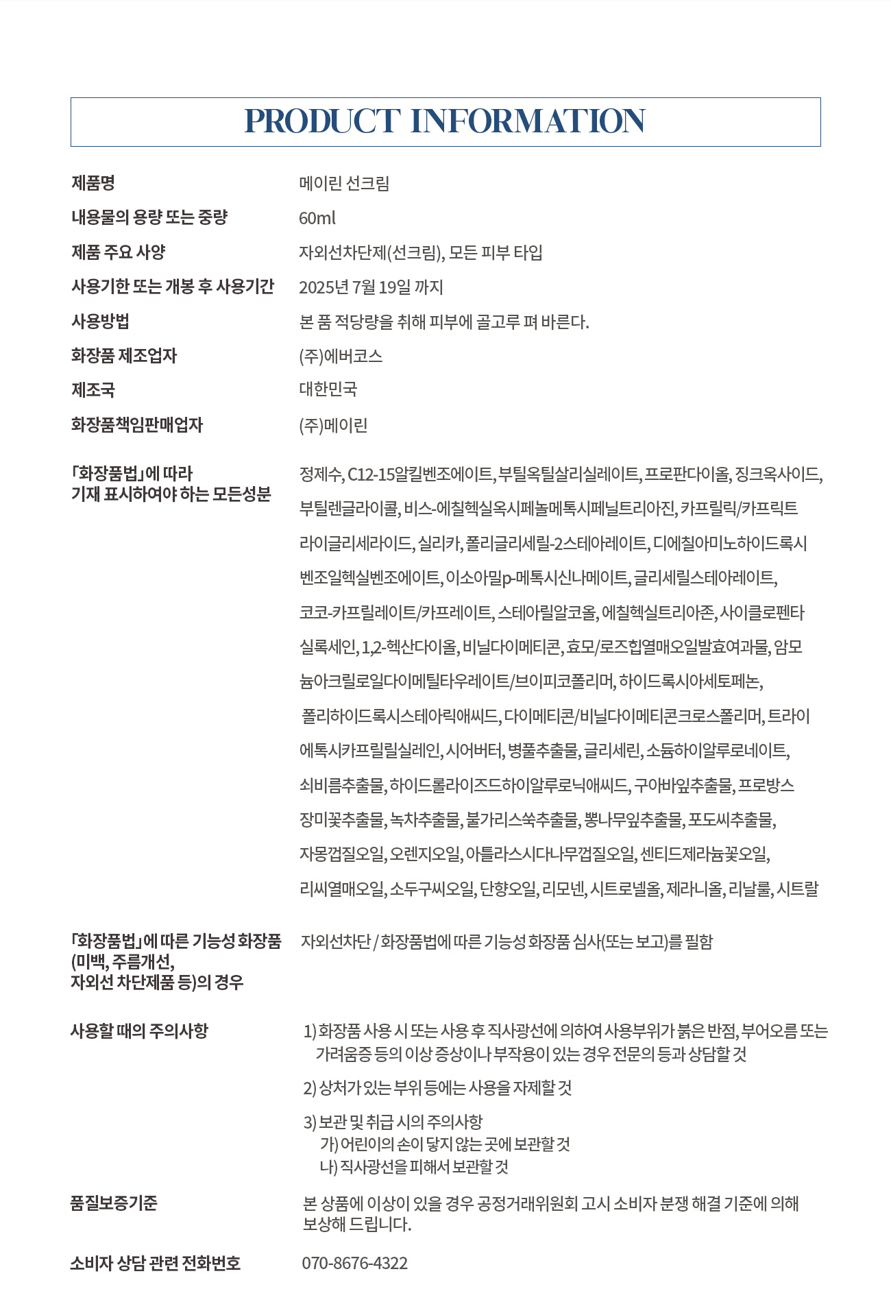 Maylin Sun Cream 60ml SPF50+ PA++++ / 메이린 선크림 60ml SPF50+ PA++++